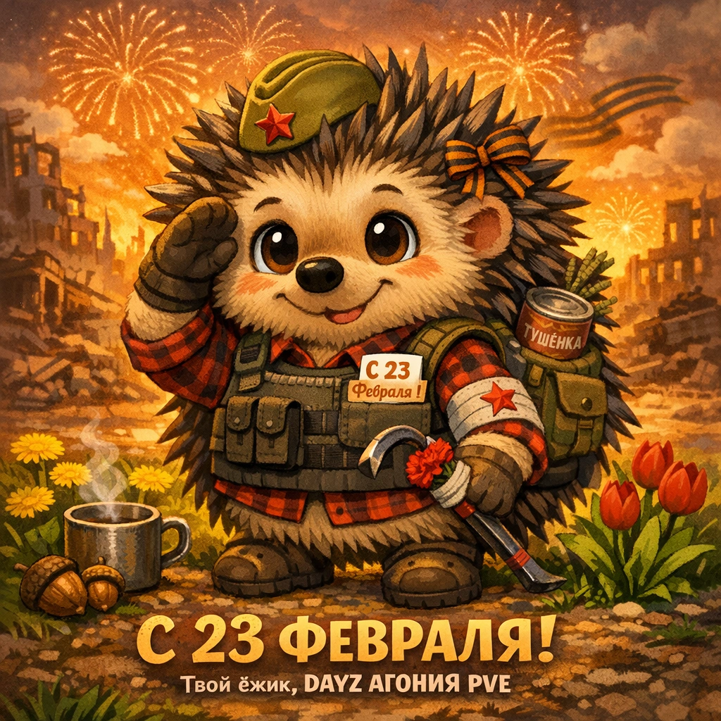 С праздником, братья! Вы — наша главная сила и опора. Ваш ёжик-защитник и вся команда DAYZ АГОНИЯ PVE